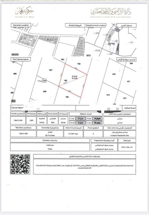Sale Below Market Price for Quick Sale Al Amira, behind McDonald\'s Land plot G 16, corner street and alley Price 7500000 Foot price only 456*16436.49 SqFt/ 1527 SQM