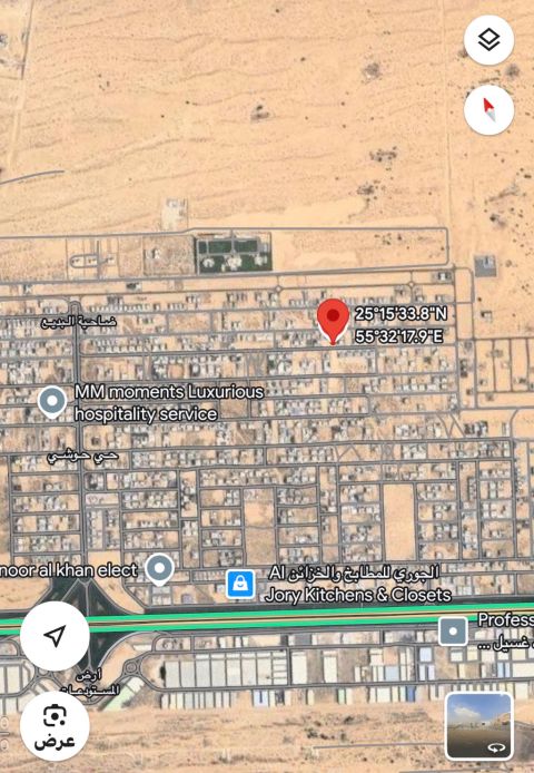 For sale Residential plot of land in the Emirate of Sharjah Al Hoshi Area/ Al Badaa Suburb Plot area 3600 square feet Permit Ground floor + first floor + 50% of the roof Length 17 meters wide x 20 meters long required price 850000 dirhams
