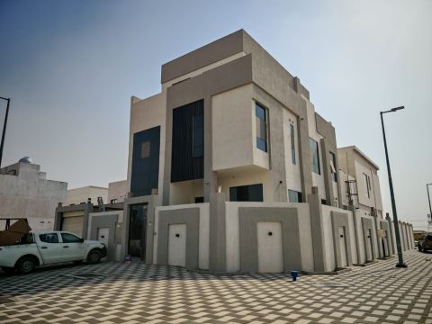 Two - floors villa for sale in Sharjah Al Hoshi area/ Al Badia suburb Land area 3150 square feet Built - in area 2900 square feet The Villa is the first inhabitant, with high - end finishes and high - quality materials. A very prime location in the early Al Hoshi area. Freehold for all Arab nationalities. It consists of The ground floor consists of A living room with a bathroom, a sitting room with