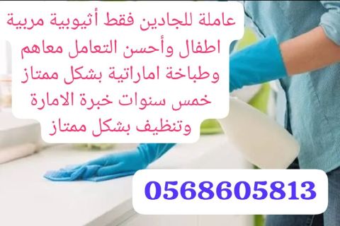 عاملة اثيوبية مربية اطفال وأحسن التعامل معاهم وطباخة، اماراتية بشكل ممتاز خمس سنوات خبرة وتنظيف بشكل ممتاز للجادين فقط