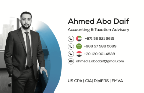 Ahmed Shawky Abodaif - Certified Accountant & Financial Consultant based in Dubai, UAE. Certifications DipIFRS, CIA, FMVA + professional fellowships in UAE & Saudi Arabia. Services full accounting setup, VAT & Corporate Tax, internal audits, budgets, external audit support, banking advisory. Keywords Certified Accountant, Internal Audit, Tax