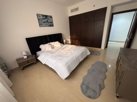 For rent in Ajman - fully furnished 2 - bedroom apartment in Al Bustan Spacious and suitable for families 3 bathrooms and very good finishing New and clean furnishings monthly rent AED5500 Refundable security deposit AED1000