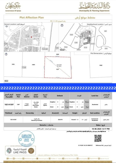 للبيع قطعة أرض سكني تجاري عجمان ليوارة 1 أرضي + 3 5974 قدم مربع مطلوب 1600000 for sale Residential and commercial plot Ajman Liwara 1 G 3 5974 SqFt 1600000