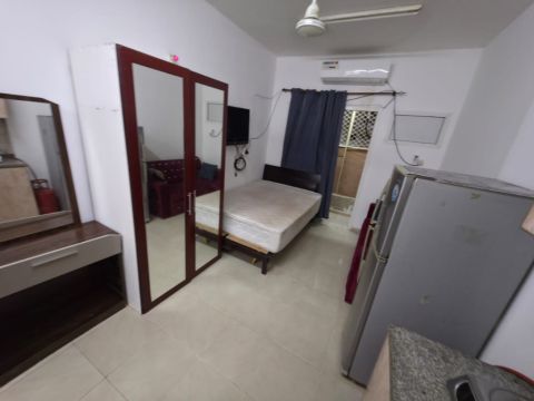استوديو طابق أرضي للإيجار السنوي بدون تصديق عقد شامل الفواتير بدون انترنت مع الفرش 23 ألف على 6 دفعات بلكونه اطلالة ممتازة ومساحة كبيرة ثاني صف من كورنيش عجمان بجوار دوار السفينة