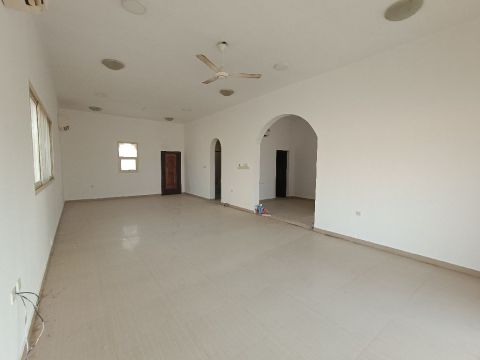 للإيجار فيلا في منطقة الظيت الجنوبي، موقع مميز تتكون من 3 غرف نوم، صالة، مجلس، مطبخ، ستور، غرفة خادمة، وحوش واسع. تشمل المكيفات. تصلح للسكن العائلي أو لموظفي القوات المسلحة أو وزارة الصحة. المطلوب 70000 درهم سنويا