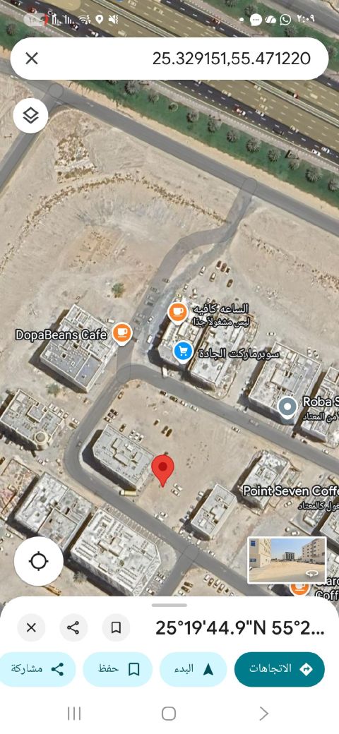 أرض للبيع في الشارقة منطقة الفلاح مساحة 5300 قدم مربع موقع ممتاز زاوية على شارعين وثالث قطعة من الحديقة تصريح البناء أرضي + 4 + 50% من السطح تملك حر للعرب السعر 4400000
