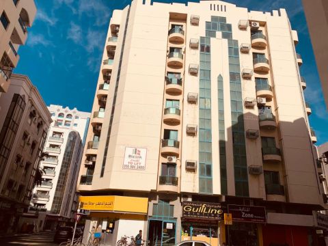 للبيع بناية في المصلى 1600 قدم مربع العمر 6 سنوات تكييف سبليت يونتد تتكون من أرضي + 2 طابق 4 استوديو 2 شقة غرفة وصالة 3 محلات مطلوب 1500000 درهم