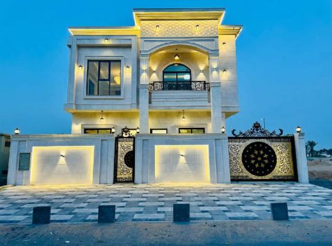 فيلا نيو كلاسيك فاخرة للبيع في الحليو 2 - عجمان بتصميم راق وتشطيب سوبر ديلوكس حديث موقع مميز على شارع كورنر وقريب من شارع الشيخ محمد بن زايد ضمانات تصل الى 25 سنة تفاصيل الفيلا المساحة 3800 قدم مربع - 5 غرف نوم ماستر بخزائن مدمجة - مجلس وصالة فسيحة بتصميم عصري - مطبخ رئيسي ومطبخ تحضيري - غرفة خادمة مع حمام مستقل السعر 2300000 درهم فقط شامل رسوم التسجيل والتمليك تواصل الآن لا تدع