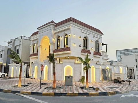 فيلا بهيئة قصر تصميم كلاسيكي فاخر في الحليو 2 عجمان 4000 قدم مكونة من 5 غرف وصالة كبيرة ومجلس ضيوف ومطبخ وغرفة خادمة تملك حر مدى الحياة لجميع الجنسيات