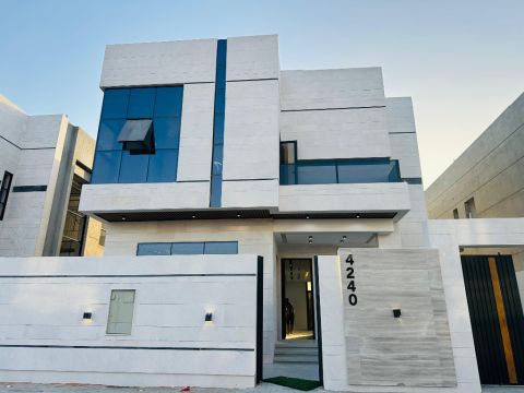 Peace, mercy, and blessings of God be upon you - for sale Residential Investment Villa Super Deluxe with stone and marble. Luxury finishing and prime location on the main street with parking spaces in Ajman Emirate, Al Helio 2 area - Land area approximately 3262 SqFt. Total built - up area approximately 3500 SqFt. Ground floor Living room + Majlis with bathroom and washbasins + master bedroom