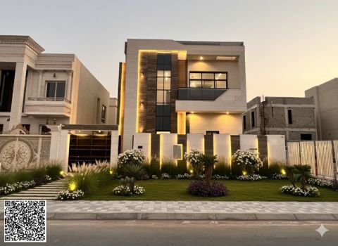 Brand new villa for rent in Ajman, Al Helio area. First occupancy. Consists of 5 bedrooms, a Majlis (formal sitting room) and a living room. rent AED110000. Contact via