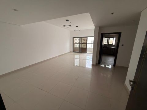 Brand new apartment for rent in Al Jerf 3, Ajman. Second occupancy, behind the Chinese Market. Special price of AED40000 with flexible payment options. Features two master bedrooms, three bathrooms, a spacious living room, and a balcony. Central air conditioning and full maintenance are included. The apartment boasts a spacious layout and a practical design that offers comfort and privacy. Close