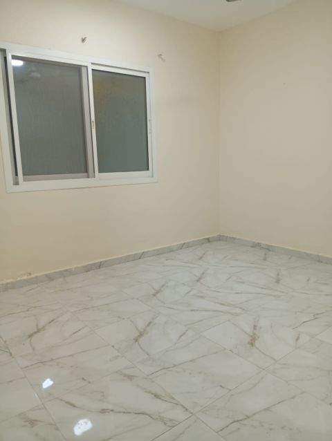 For annual rent Two bedrooms and a living room, first occupancy, in Al Jerf 2, near Sheikh Ammar Street, close to the university and courthouse. Three bathrooms, balcony, central air conditioning. Maintenance is the owner's responsibility. Price 47000 QR, payable in six installments