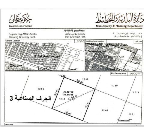 للبيع أرض سكني تجاري - الجرف 3 عجمان المساحة 900 متر (10000 قدم) التصريح G 8 تملك حر لجميع الجنسيات السعر 3300000 درهم