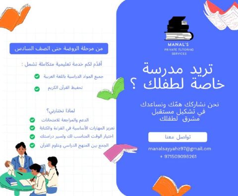 Foundational courses in Arabic, English, and Math, addressing weaknesses in foundational skills. Affordable rates for all grades and levels. Curricula include educational partnerships (Ministry of Education, US, UK, and International) Certified Math Teacher with extensive experience within the UAE. Strengthening students through a smooth, simplified, and successful scientific approach