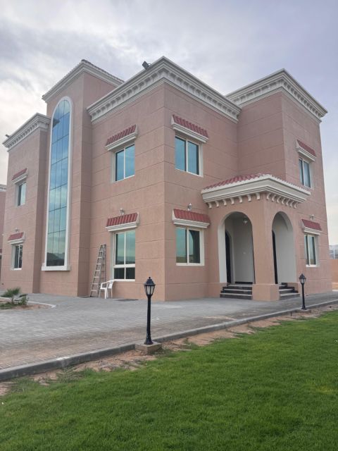 متاح للبيع في إمارة الشارقة منطقة الجرينة 4 غرف ماستر + مجلس ومطبخ ملحق خارجي به غرفتين المساحة 19 ألف قدم الفيلا بحالة ممتازة جدا من الداخل