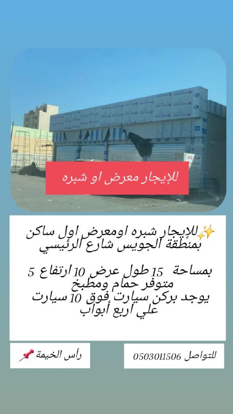 للإيجار في رأس الخيمة شبرة مساحة كبيرة تصلح لأنشطة متعددة على شارع عام بمنطقة الجويس خلف ماكدونال يوجد بها كهرباء للتواصل