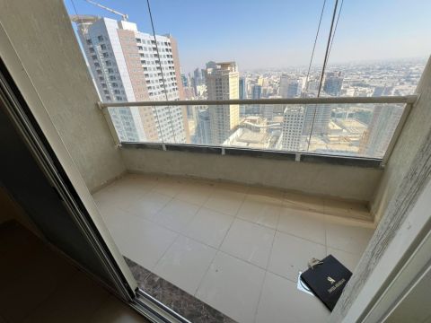 شقة غرفتين وصالة مع باركينغ للإيجار في الخان قرب نستو. تتكون من غرفتين ماستر، وصالة، وحمامين، ومطبخ صغير، مع نوافذ بانورامية واطلالة مفتوحة وجزئية على البحر. مساحات الشقة صغيرة لكنها مرتبة، ويتوفر جيم داخل البرج. الإيجار السنوي 48000 درهم