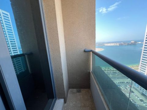 Well - maintained second - tenant apartment for rent in Al Khan - Al Qasba. Features 2 master bedrooms, living room, balcony with beautiful sea view, and kitchen with sea view as well. Includes 3 bathrooms, extra built - in wardrobes, and dedicated parking. Tower is only 2 years old. No gym or pool. Annual rent AED60000
