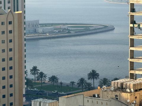 للإيجار شقة مفروشة غرفة وصالة في الشارقة كورنيش الخان 5000 درهم اطلالة مائية كاملة على كورنيش الخان قرب جزيرة مريم فرش راقي موقع ممتاز برج راقي صف أول عالكورنيش مجهز بكافة الخدمات جيم مسبح جاكوزي نادي صحي رياضي متكامل قريبة جدا من دبي مع الانترنت