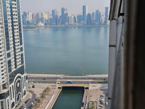للإيجار في الشارقة بمنطقة المجاز 3 2 غرفتين وصالة 3 حمام 1 بلكونه اطلالة كاملة علي البحر موقف مجاني جيم مجاني مسبح مجاني التكييف مجاني مساحات كبيرة السعر 75 ألف