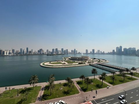 شقة 4 غرف وصالة + 9 بلكون اطلالة مفتوحه على البحيرة + 4 حمام وخزائن في الحائط مع موقف مجاني وتكييف مجاني + شهر أيضا مجاني مساحة كبيرة جدا بقلب المجاز 1 مناسبة للعائلات الكبيرة موقع مميز من كل النواحي يناسب أصحاب الذوق الرفيع والمستوى العالى بسعر ممتاز 70000 درهم فقط على 4 أو 6 دفعات