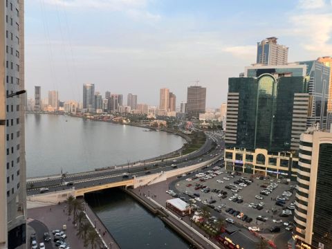 Price AED50000 Yearly (4 Payments) Apartment for rent in Al Majaz 3. bedrooms + living room, 3 bathrooms, kitchen, and 3 balconies. Second row from Khalid Lagoon, close to Etisalat. Security Deposit Cash Prime location near the lagoon and all services