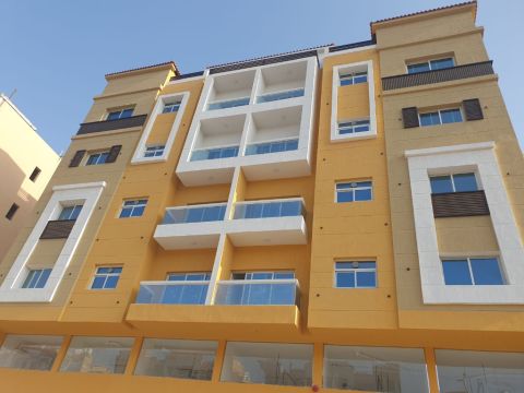 For sale A building in Ajman, Al Al Mwaihat 2, on the main road. The building has a land area of 10000 SqFt (ground floor + 4 floors) is two years old, and contains 34 apartments, 8 shops, and a warehouse. It includes 16 one - bedroom apartments and 16 two - bedroom apartments. The current monthly income is AED1.4 million, subject to adjustment and increase after one year. The asking price is AED