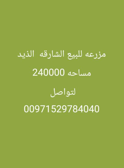 For sale a farm in Al Dhaid on Al QR Street directly in the Oliver 2 area, the total area is approximately 120000 feet, it has 100 kV government water and electricity parchment, a very special location, a corner on QR and Sekka Street. There are also other offers