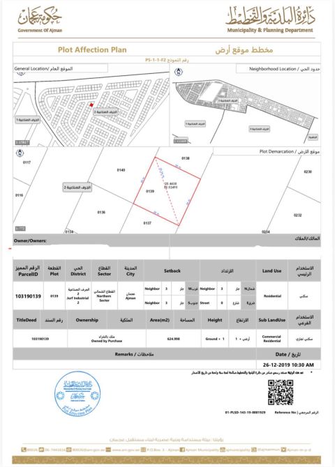 قطعة أرض للبيع، تملك حر لجميع الجنسيات. الموقع / منطقة المويهات 2، إمارة عجمان. موقع ممتاز منطقة راقية ومخدمة. تصريح / سكني تجاري. مساحة 9687 قدم مربع. تصريح بناء / أرضي + 1 طوابق. موقع مميز وسعر جيد. السعر 2 مليون و700 ألف