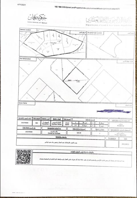 In one of Ajman's most prestigious areas. Freehold ownership for all nationalities. Land for sale. Location Al Al Mwaihat 3, Ajman. Excellent location, second plot from the main road. Use (Building Type) Residential/ Commercial. Area 13455 SqFt. Building Permit Ground + 3 floors. Prime location and good price
