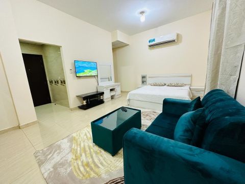 Furnished studio for monthly rent in Ajman. Large living room, separate kitchen. Suitable for families and individuals. Newly furnished. A prime and convenient location. Al Al Mwaihat 2 - Sheikh Ammar Street Very close to Saudi German Hospital Price includes Electricity, Water, Internet