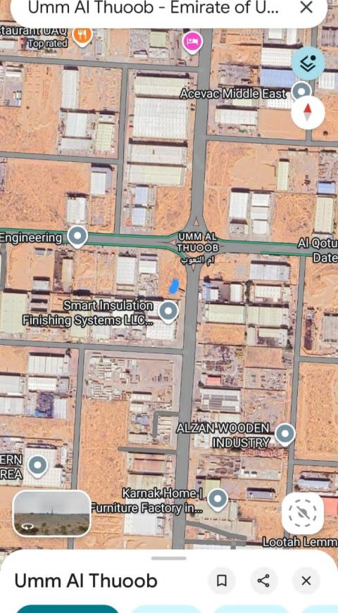 Golden Investment Opportunity for Large Project Owners Prime Land Plot for sale In the Modern Industrial Area - Umm Al Thu'ub (formerly) Directly on the main roundabout of the Modern Industrial Area Land Details Frontage 45*90 meters On two main streets Street Width 60 meters Orientation Northeast Total Area 43500 SqFt Suitable for Factories