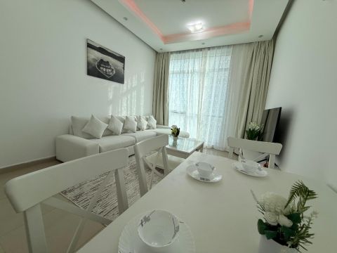 Furnished one - bedroom apartment for monthly rent on Ajman Corniche First occupancy Al Nakheel 2 Al Ittihad Tower Opposite Bahi Ajman Palace Hotel and Fairmont Hotel Very clean furnishings, first occupancy Price includes all bills electricity, water, internet, sewage, and parking The apartment is very spacious, with a master bedroom, two bathrooms, a separate kitchen, and a very large living room Full