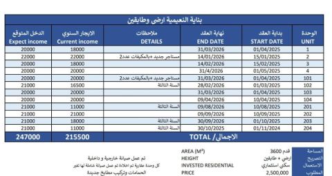 00971551777070 Tower for sale ground floor + 4 parks + 12 floors residential commercial Tower details (28) Unit 2 rooms and a hall (58) Unit 1 room and hall (72) Parking (20) Studio (3) Shops Total area 900 SQM/ 9500 square feet Location Al Al Nuaimia 1, Ajman, Rental income