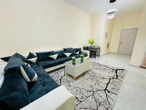 For rent in Ajman Al Al Nuaimia 3 furnished apartment, one room and a hall, City Tower, opposite Grand Mall, Khalifa Street, next to Safeer Mall, clean and tidy furniture, excellent location, fully equipped with all home appliances, central air conditioning, 2 bathrooms with a balcony, easy exit to Dubai and Sharjah, price 3500, including all bills, with internet