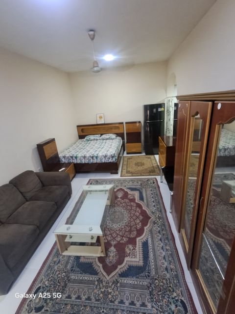 Studio apartment with partition available for monthly rent in Ajman, Al Al Nuaimia 2, Kuwait Street. Price AED3200 (inclusive of bills, internet, and maintenance) Free parking. fully furnished. Central air conditioning. Separate, fully equipped kitchen and comfortable bathroom. Excellent location