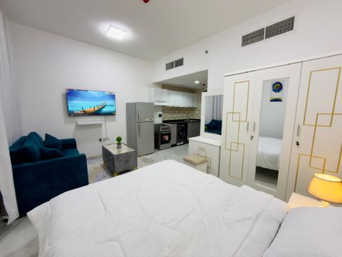 Fully furnished studio apartments with separate kitchens, including utilities and internet, available for monthly rent - VIP Furnishings, Al Al Nuaimia 1 - Kuwait Street. Spacious, fully furnished studio with VIP furnishings. All utilities (electricity, water, and internet) included. Family - oriented, brand new building, close to services and the Sharjah and Dubai exit. Available from 7/ 3. monthly