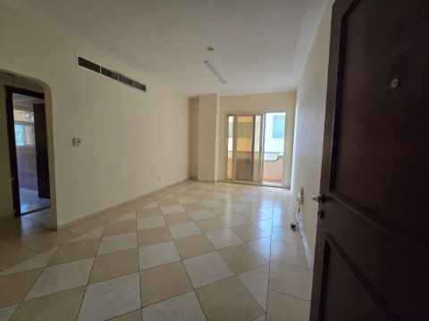 One bedroom and living room in Al Qasimia, Al Nadd area, free parking, central air conditioning, central gas, open view, modern kitchen, located on King Faisal Street, easy access to Dubai and Ajman exits. Price 33000
