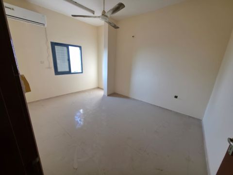 For annual rent in Ajman, Al Nakheel, behind City Max Corniche, a family building with private security. Two bedrooms, a living room, three bathrooms, an American - style kitchen, central air conditioning, and central gas. Both bedrooms are master suites with built - in wardrobes. Laundry room (no balcony) AED35000 payable in 4 or 6 installments. AED3000 security deposit required