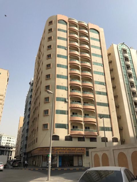 للبيع بناية في القاسمية - مساحة عشر ألاف قدم أرضي وأربع طوابق فيها 16 شقة غرفة و16 غرفتين ورووف - 8 محلات - موقف سيارات بدخل مليون درهم مطلوب تسعه ونصف مليون درهم