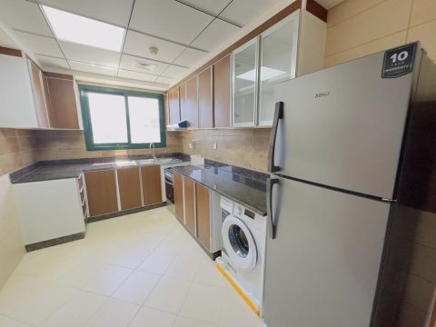 للإيجار الشهري - شقة غرفتين وصالة في أبراج الهورايزون، منطقة الراشدية، عجمان. الشقة بمساحة ممتازة تبلغ 1800 قدم مربع، مع تكييف مركزي وموقع استراتيجي في وسط عجمان، قريب من سفير هايبر وسوق السمك وشارع خليفة، مع سهولة الوصول الى دبي والشارقة. تم تشطيب الشقة بتصميم "الترا سوبر ديلوكس" مع أرضيات باركيه وفرش جديد لأول ساكن، ومطبخ جديد بالكامل مجهز بجميع الاجهزة الكهربائية. تشمل الشقة ثلاث حمامات راقية