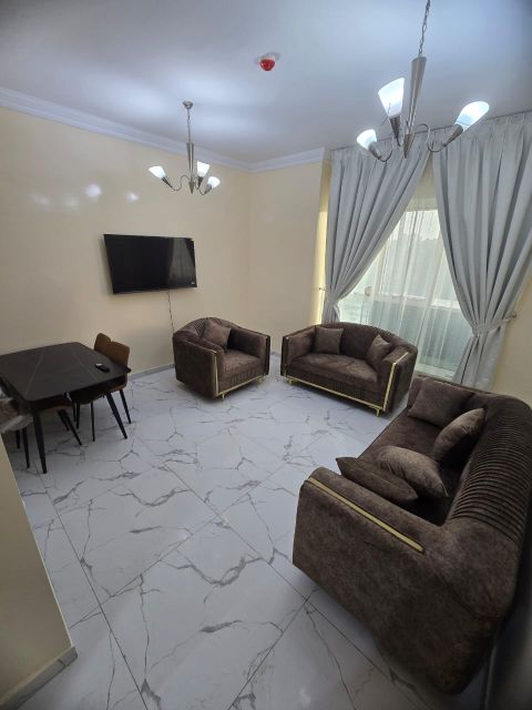 غرفة وصالة مفروش للإيجار الشهري إمارة عجمان منطقة الراشدية 3 سهل المخرج لدبي والشارقة خلف الجراند مول وقريب من قصر الحاكم شامل كل الفواتير الكهرباء والماء والصرف الصحي والانترنت