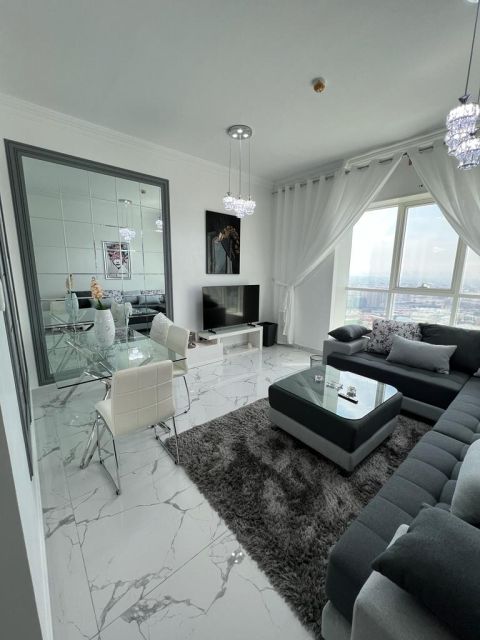 For monthly rent in Ajman, the largest area, two rooms and a hall, fully furnished, ultra super deluxe furniture, Rashidiya 1 Horizon Towers, sea view next to Nesto and Al Safir Mall, and next to public transportation, at a price of 7500, including all bills and the Internet. Seize the opportunity and contact us quickly