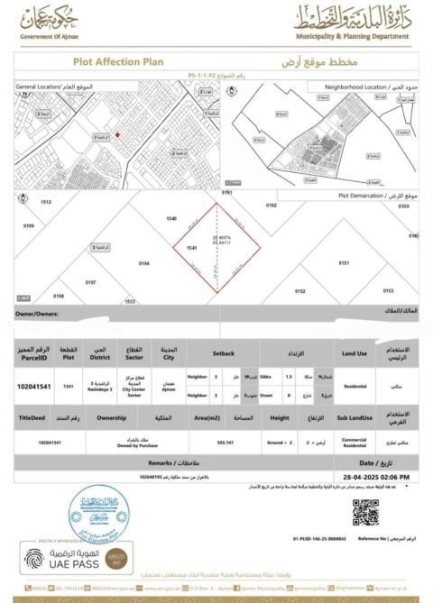 للبيع من المالك مباشرة أرض في الراشدية - عجمان سكني تجاري أرضي + 8 المساحة 1113م (11990 قدم) شارع وسكة - موقع ممتاز المطلوب 4000000 درهم (قابل للتفاوض) for sale - Direct from Owner Land in Rashidiya Ajman Residential + Commercial G 8 Area 1113 SQM (11990 SqFt. On road & alley - Prime location Price AED4000000 (Ne