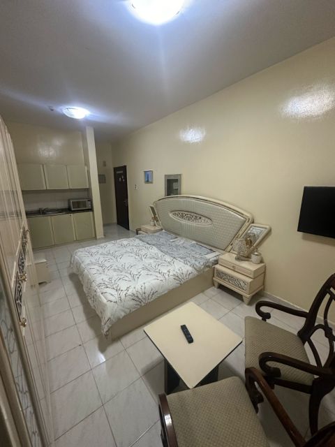 Furnished studio apartment for monthly rent in Ajman Al Rawda 2, behind Emirates Beach Direct exit to Dubai and Sharjah Near all services, restaurants, cafes, and bus station Includes all bills, internet, and dirt parking rent AED2800 Deposit AED500, refundable upon departure