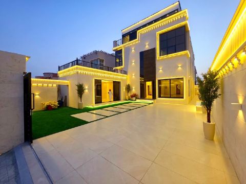فيلا فاخرة جدا للبيع في الروضة 2 - تصميم مودرن وتشطيبات راقية فرصة استثنائية لامتلاك فيلا جديدة بتصميم عصري في موقع مميز بمنطقة الروضة 2 - عجمان، تملك حر لجميع الجنسيات، قريبة من كافة الخدمات (المدارس، المستشفيات، المحلات التجارية) الموقع ثاني قطعة من شارع عمار مباشرة، موقع استراتيجي وحيوي. تفاصيل الفيلا 5 غرف نوم ماستر مع خزائن ملابس صالتان واسعتان مجلس مستقل غرفة خادمة مطبخ رئيسي مجهز بالكامل