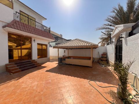 فيلا للإيجار السنوي - الروضة 2 عجمان بجانب مسجد - دقيقة من شارع الشيخ عمار 5 غرف صالة + مجلس 8 حمامات مطبخ + ستور غرفة عاملة حديقة + حوش 125000 درهم على 4 دفعات