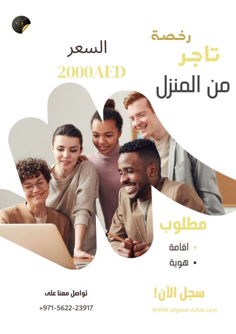 هتشتغل قانوني وأنت في منزلك ابدأ تجارتك في دبي اليوم رخصة تاجر أسهل طريقة لبدء مشروعك من المنزل أو عبر الانترنت اجراءات سريعة وبسيطة متاحة لكل الجنسيات مناسبة للأعمال الصغيرة والمتوسطة وفر وقتك وابدأ نشاطك بشكل قانوني في دبي
