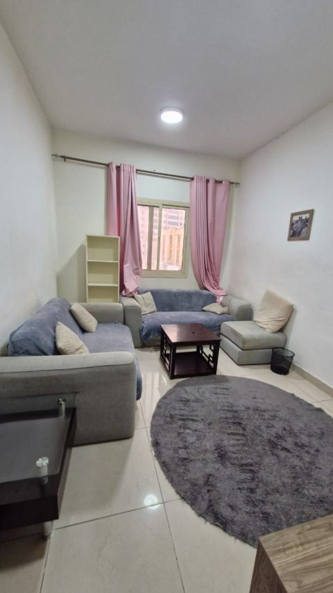 شقة غرفة وصالة عجمان منطقة الروضة 3 قريب من الحوت وهاشم هايبر ماركت ومركز القبائل للتخفيضات شقة غرفة وصالة فرش جديد ونظيف حمامين - بلكونه - تكييف مركزي الإيجار شامل كافة الفواتير مع الانترنت والصيانة عدا الغاز